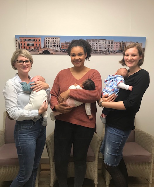 Wir gratulieren unseren Mitarbeiterinnen Gina Koch (IT-Leitung), Vanessa Meneghini (MFA), Wiebke Weis (Concierge) - Foto v.l.n.r. - sowie unseren Ärztinnen Dr. Stefanie Behm und Dr.Sabine Soens zum Nachwuchs.